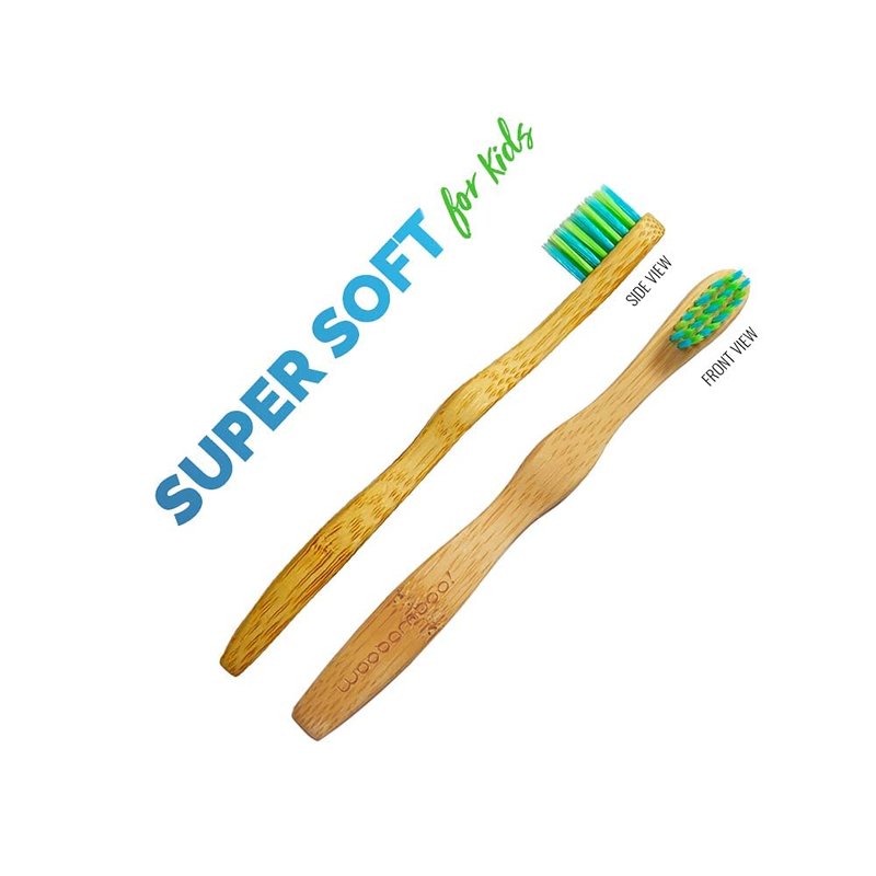 …This bundle includes (2) Kids Bamboo Toothbrushes with Super Soft Bristles...Like all WooBamboo brushes, these “Sprout” brushes have handles made from a single piece of carved, Sustainably Harvested bamboo, containing no toxins, glues, or paints, sealed with a vegan soybean wax.