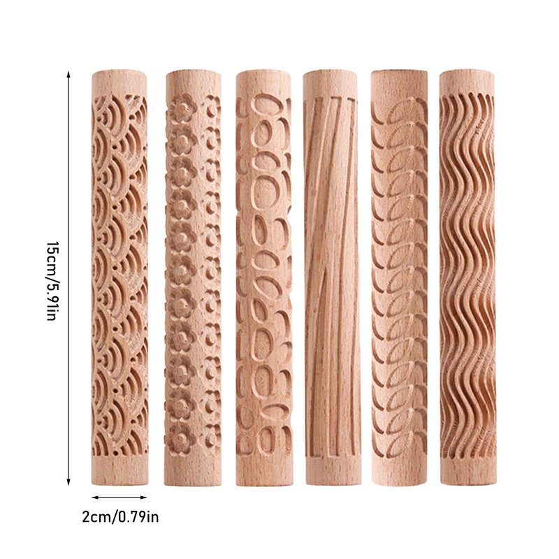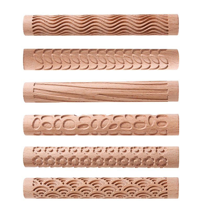 6 x clay texture roller wooden