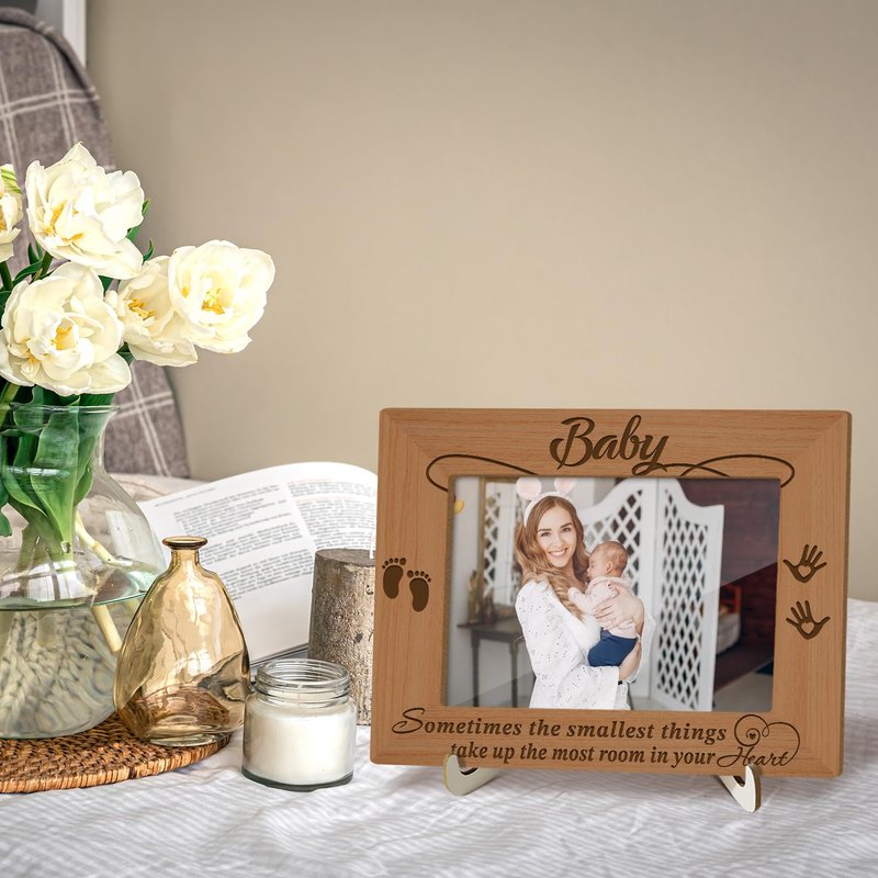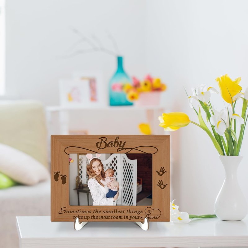 Wood Picture Frame with Wood Stand, Footprint Photo Frame Tabletop Display - Baby, Shelf Desk Decor Gift for Pregnant Mom New Dad Mother-to-be, Home Decor Supplies, Fits 4x6" Horizontal -27