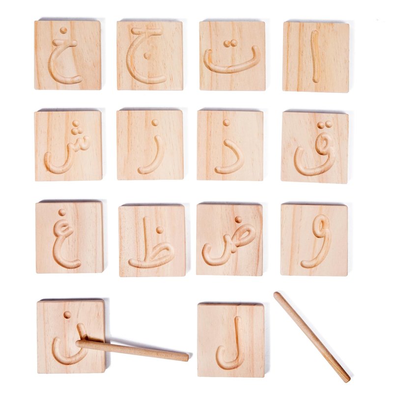 - Montessori Inspired: Children can practice proper letter formation and develop their reading and writing skills with these hands-on, natural solid wooden Arabic alphabet tiles. Younger children can simply use a finger to begin learning how to trace the shaped, while older children who are ready for handwriting can use the included wooden stylus to develop the hand and finger strength required for a proper pencil grip