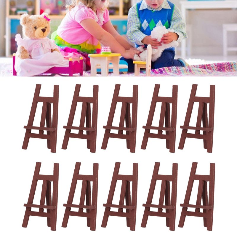 Wooden Dollhouse Accessories, Dollhouse Miniatures, 10 Pcs Dollhouse Easel Detail Design Sturdy Pinewood Multi Purpose Miniature Painting Easel for 1:12 1:6 Scale