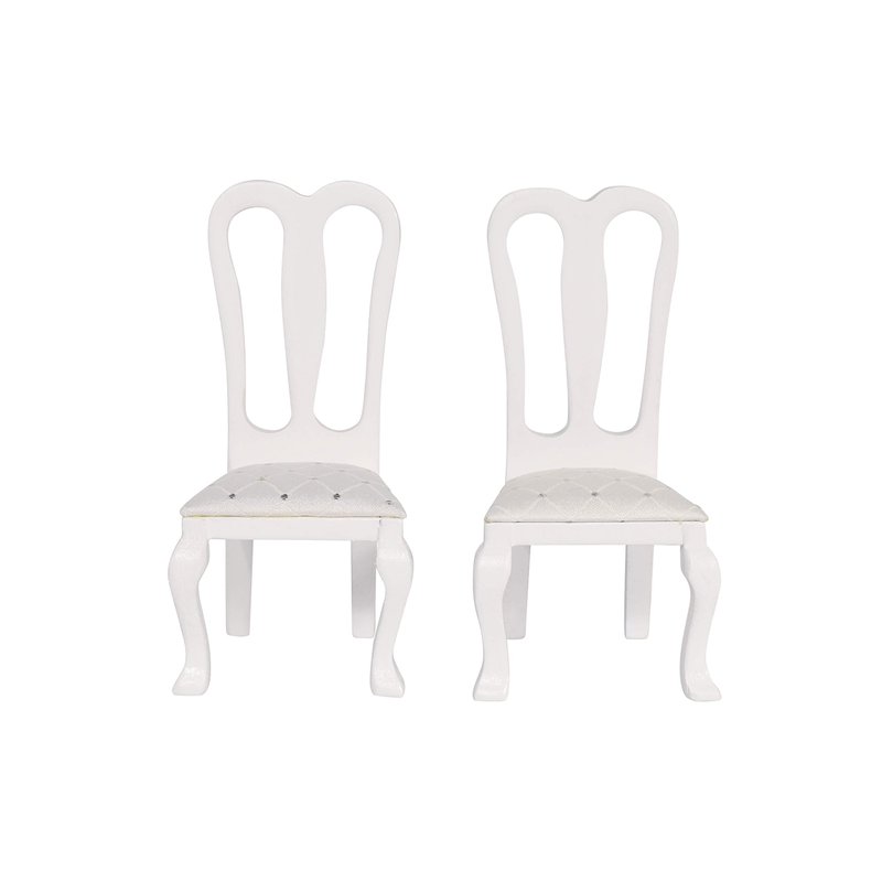 Wooden Dollhouse Dining Chairs, Set of 2, Accent Chairs for Doll Houses, Miniature Furniture, White, Upholstered, for 3 inch to 6 inch Dolls