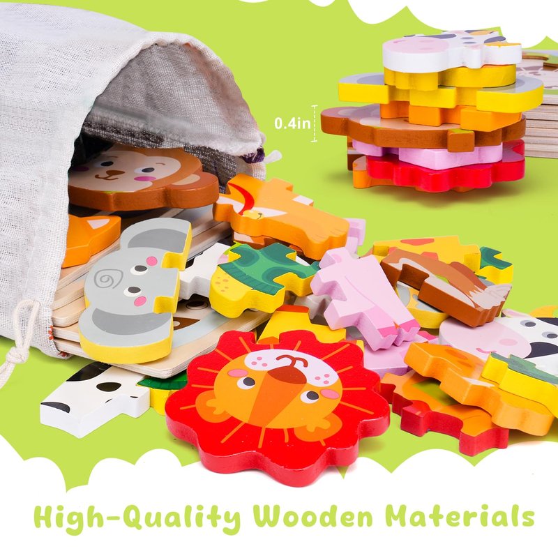This vibrant, 8-piece wooden toddler puzzle set is tailor-made for children aged 1-3 and 2-4 years old. Each puzzle piece is designed in the shape of an adorable animal, featuring smooth edges and vibrant colors that are visually stimulating and perfect for developing color recognition skills.