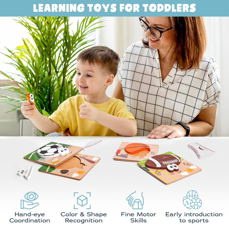Wooden Puzzles for Toddlers 2-4 | Sports Puzzles | Wood Puzzles for Kids, Toddler Sports Toys for Toddlers, Basketball Toy, Football Toys, Baseball Toy, Soccer Toddler Puzzle 2 3 Year Old Boy