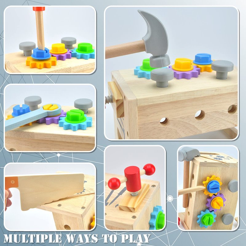 - 【Kids Tool Sets for Boys Age 3+】Our toddler tool toys is easy to assemble and disassemble. Kids can learn to twist screws with screwdriver, hit nails with hammer, use spanner, saw the wood, and play the gears. This tool set will give them hours of fun and safe imaginative play!! It is a great learning toy that can teach kids how to use tools.
