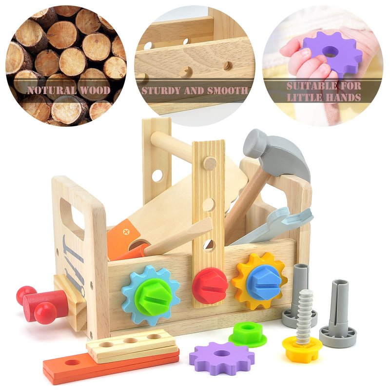 - 【High-quality and Safe Material】The toddler tool set for kids are made of high-quality wood, the edges and surface are polished round,smooth and burr-free,in the use of tools for young kid will not hurt the delicate hands.
