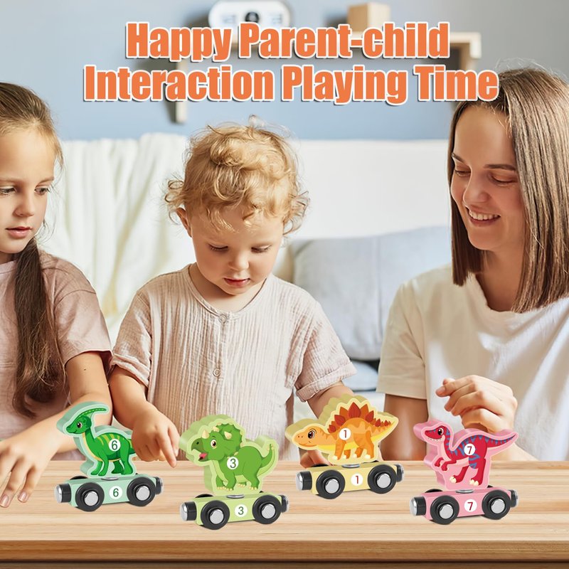 - Early Education Train Toy: Our magnetic dino train set combines many novel designs, and can train kids' hand-eye coordination and fine motor skills. It is the best early education learning and cognitive toy for toddlers. Warm tip: the sides of the train set with numbers need to be put together in order so that the train set can be connected smoothly. Another interesting way to play with our latest dinosaur train toy is that the dino pattern on the top of the train set can be rotated at any angle