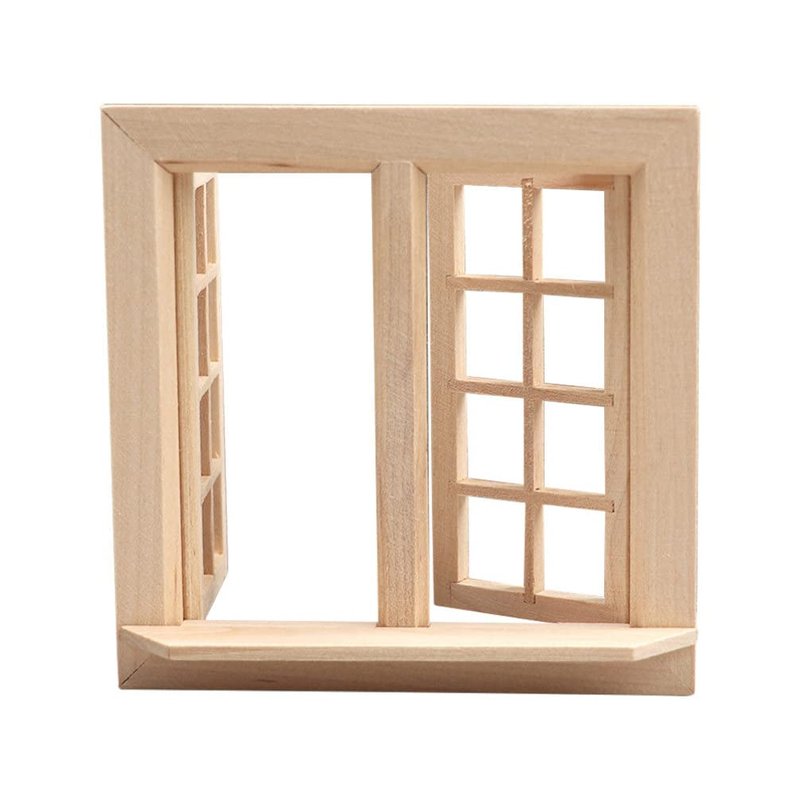 Wooden Window for Dollhouse, Miniature Window Frame Mini Furniture Doll House 1: 12 Dollhouse Wooden Doors Miniature Furniture Doll Craft Window Frame Model Decoration