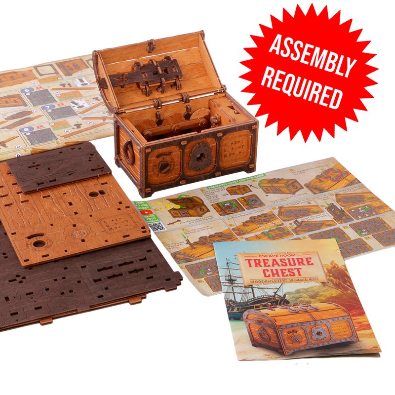 WOODEN.CITY Treasure Chest Escape Room in a Box - Hard Puzzle Box for Adults Wooden Kit - Clue Box Escape Puzzle - 3D Escape Room Puzzles - Wooden Mechanical Puzzles for Adults - Pirates Puzzle Box