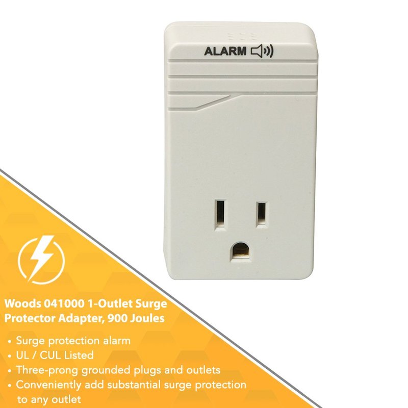 Woods Surge Protector Adapter For 900 Joules Of Protection With One 3-Prong Outlet And Surge Protection Alarm (Wall Mounted, Light Grey)