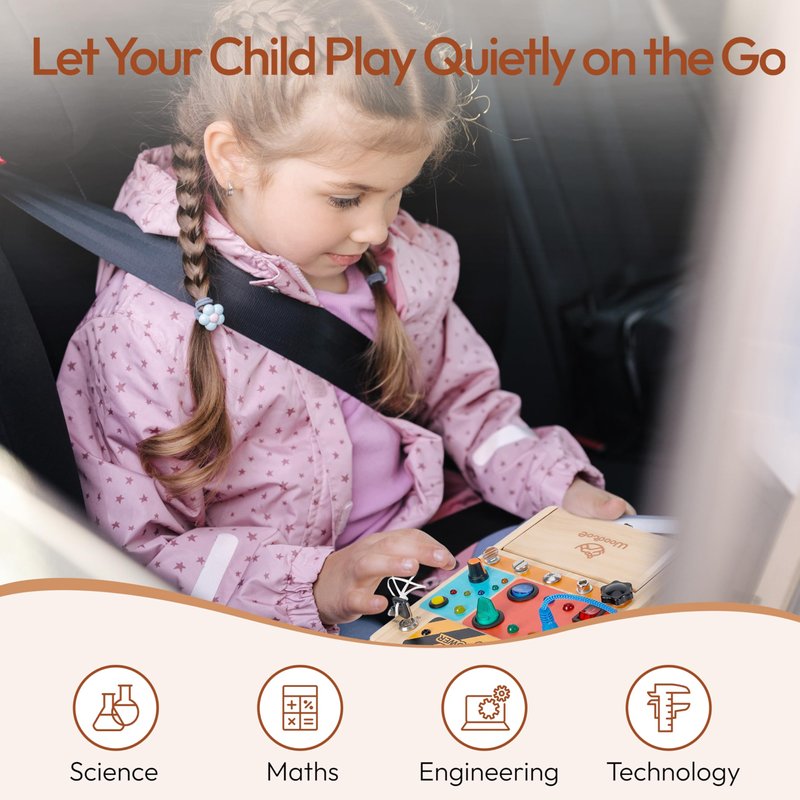 - Easy to Carry: This busy board with LED light is designed with storage space that can hold all the accessories, making it easy to carry. Children can easily play whether at home, school, or while traveling, keeping them busy