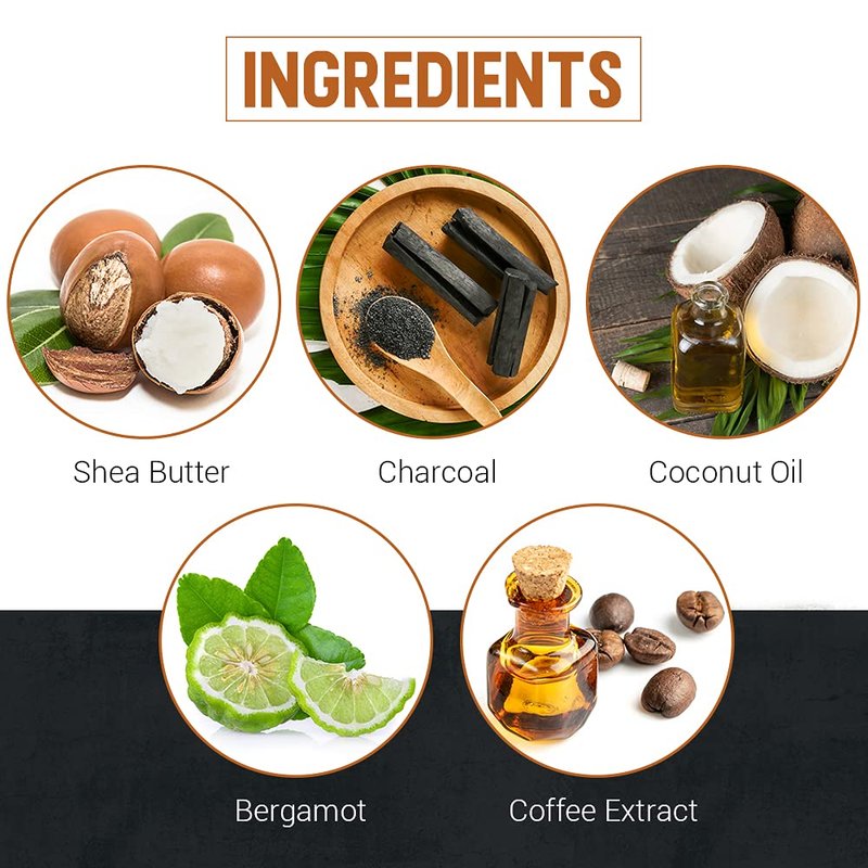 - Nourishing Blend: Enriched with coconut oil to moisturize, and bergamot and coffee for an invigorating scent