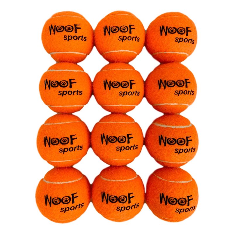 Woof Sports Dog Tennis Balls 12 Orange Tennis Balls for Dogs. Easy to Find! Includes Carrying Bag. Medium Size Balls Fits Standard Ball Launchers