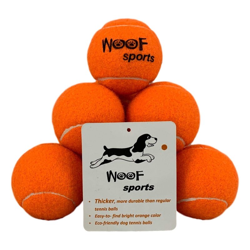 Woof Sports is a dog-loving, small, family-owned business. Our goal is to produce high quality dog tennis balls at a fair price. We started Woof Sports by first selling medium sized dog tennis balls. We soon found that customers with smaller dogs wanted a smaller ball. We are excited to offer these smaller dog tennis balls in our product line. Durability has been a chief priority for our customers so we looked far and wide to find a supplier who made a thicker ball. We found one and are very happy with the quality and durability of the ball. Our product testing included hours of chewing and chomping on the mini tennis balls by our Springer Spaniel. The mini tennis balls survived. The ball also has a good bounce for play and fetching. We continue to use a bright orange color in all of our tennis balls for high visibility in the grass. It was also important to us that the ball was eco-friendly and pet safe. The balls are made of natural rubber and toxic free dyes. Lastly, we include a reusable mesh bag with a draw string to make it convenient to transport. We hope you like our product as much as we do!
