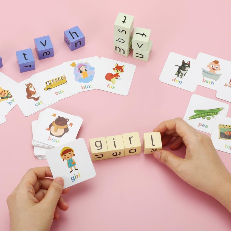 Educational Flash Cards and Wooden Blocks Spelling Games