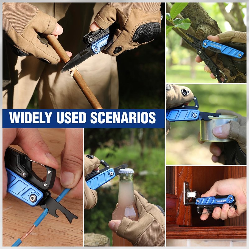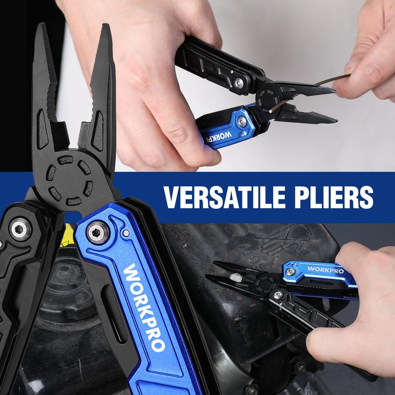 WORKPRO Multitool-11 in 1 Multitool Pliers with Pocket Clip and Sheath-EDC Multi Tool Knives with Safety Lock-Camping Tools Pocket Knife with Screwdriver Saw Blade Wire Cutter and Bottle Opener-Blue