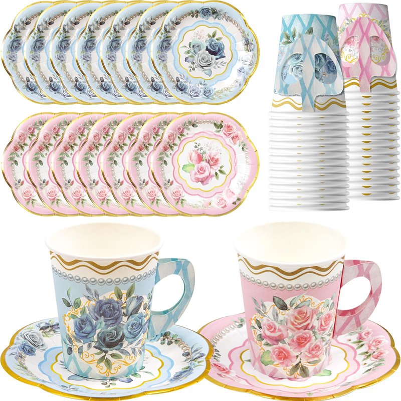 - Package Includes: 24 floral paper tea cups in 9 oz and 24 sauces in 5.7 inches; 2 styles