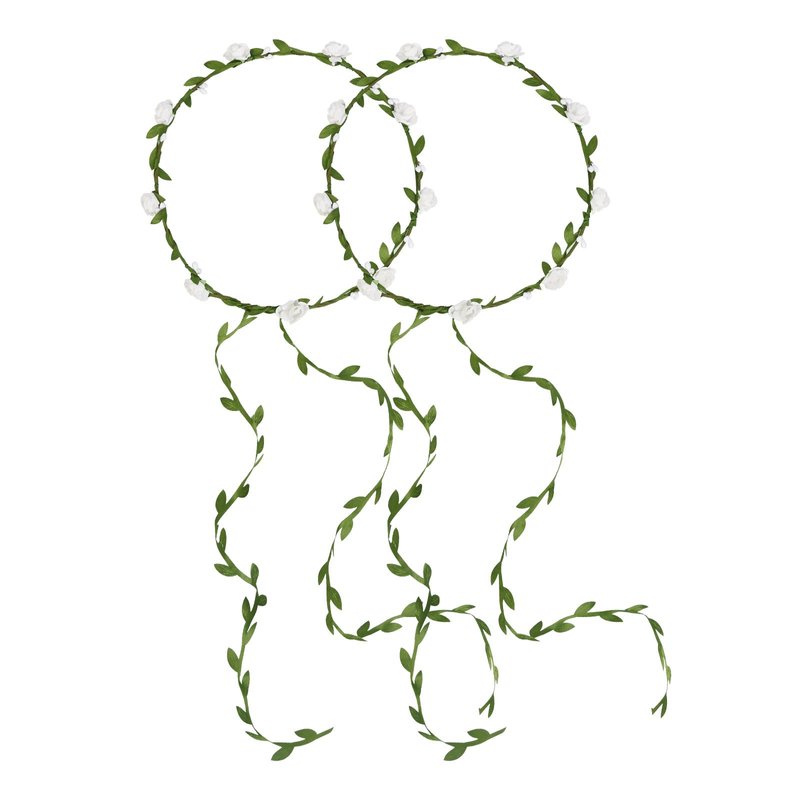 WOVOWOVO 2 Packs Flower Crown Flower Headbands for Women Girls, Fairy Costume Birthday Decorations Hair Accessories, Boho Floral Crowns for Wedding Party Vacation Pregnancy Photography Props (White)
