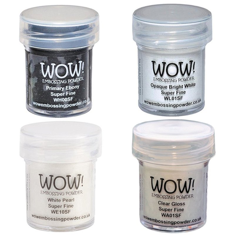 Wow! Embossing Powder Black and White Bundle: Primary Ebony, Opaque Bright White, White Pearl, Clear Gloss, 15ML