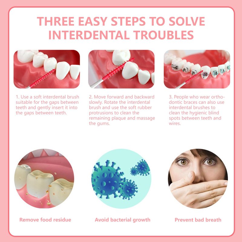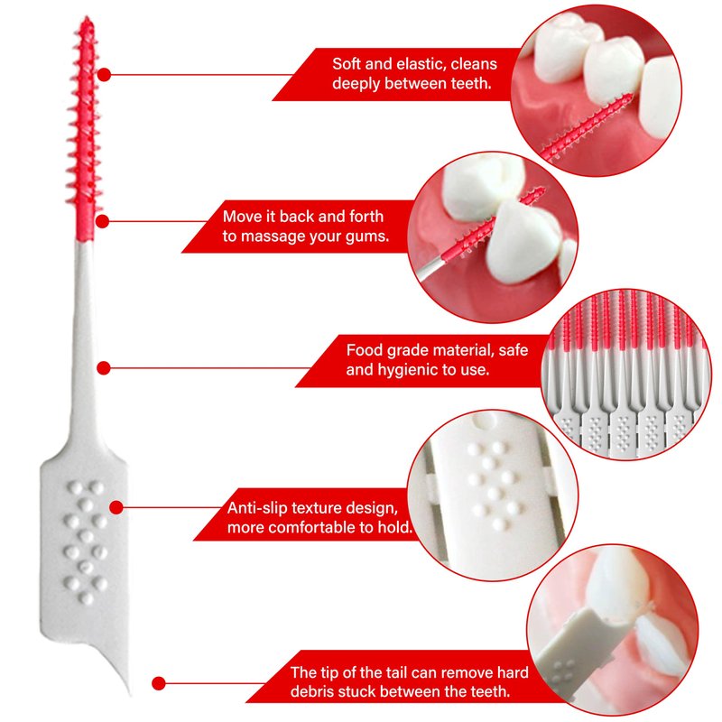WQINX Dental Floss Picks Soft Silicone interdental Brush, Braces Brush, Floss Picks for Teeth, interdental Brush, Disposable interdental Brush, Suitable for Cleaning Teeth Health