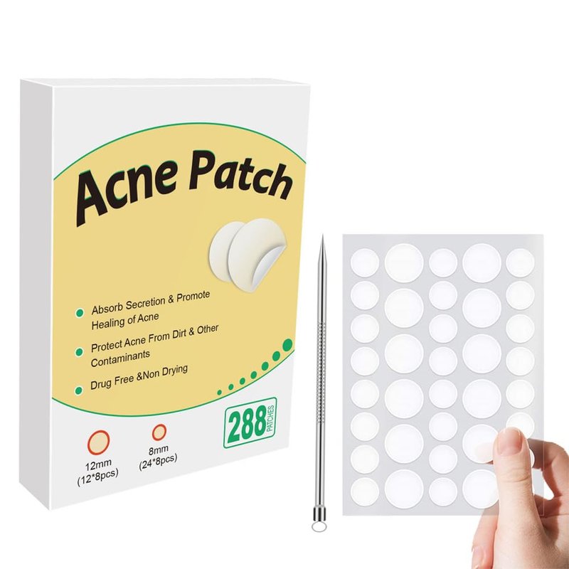 WQJifv Acne Patch Pimple Patch, 2 Size 288 Patches Acne Absorbing Cover Patch with Acne Needle, Hydrocolloid Invisible Acne Patches For Face Zit Patch Acne, Acne Spot Healing Patch Zit Patches