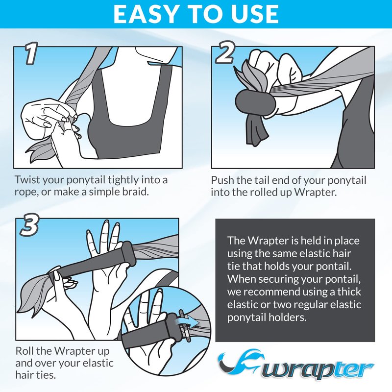 - MORE OFTEN THAN NOT, PONYTAIL WRAPS for long hair are either PAINFULLY TIGHT or TOO LOOSE, falling off when you need them most. Crafted out of our stretchy, custom SPANDEX-LATEX BLEND, the one-size-fits-most Wrapter Ponytail Wrap expands to fit easily over LONGER, THICKER HAIR that’s secured by a ponytail holder – so your mane stays PROTECTED from TANGLES, DIRT & DEBRIS.