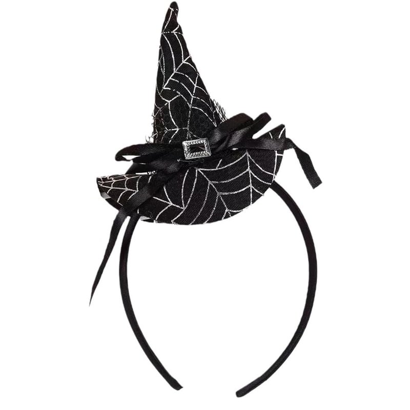 WRBAJIS Halloween Witch Hat Headband Spider Web Hair Bands Cute Hair Accessories for Women Halloween Party Supplies Silver