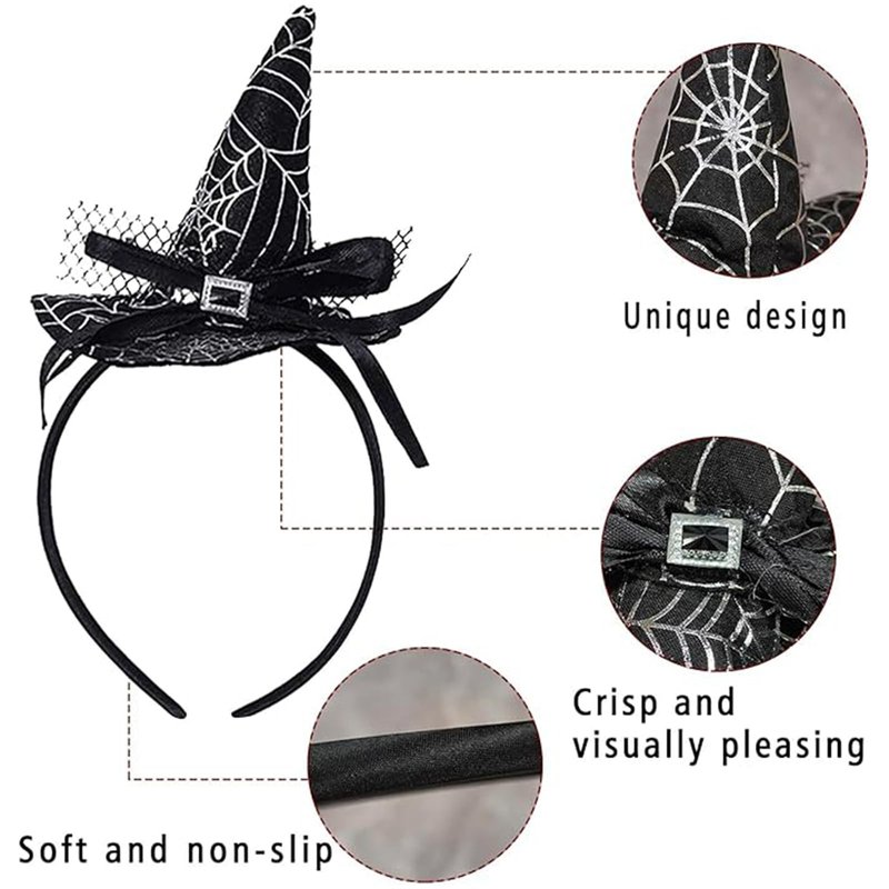 - Unique Design: Halloween women headbands features a witch hat and spider web design, cute and fun, suitable for matching with your different Halloween outfits, add a touch of charm and creativity to your outfits