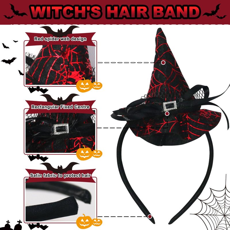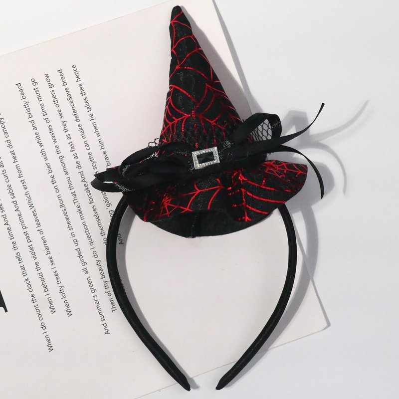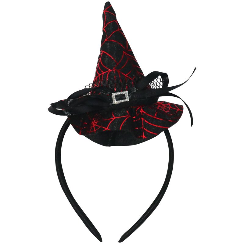 WRBAJIS Halloween Witch Hat Headband Spider Web Hair Bands Witches Hat Hair Accessories for Women Halloween Party Supplies Red