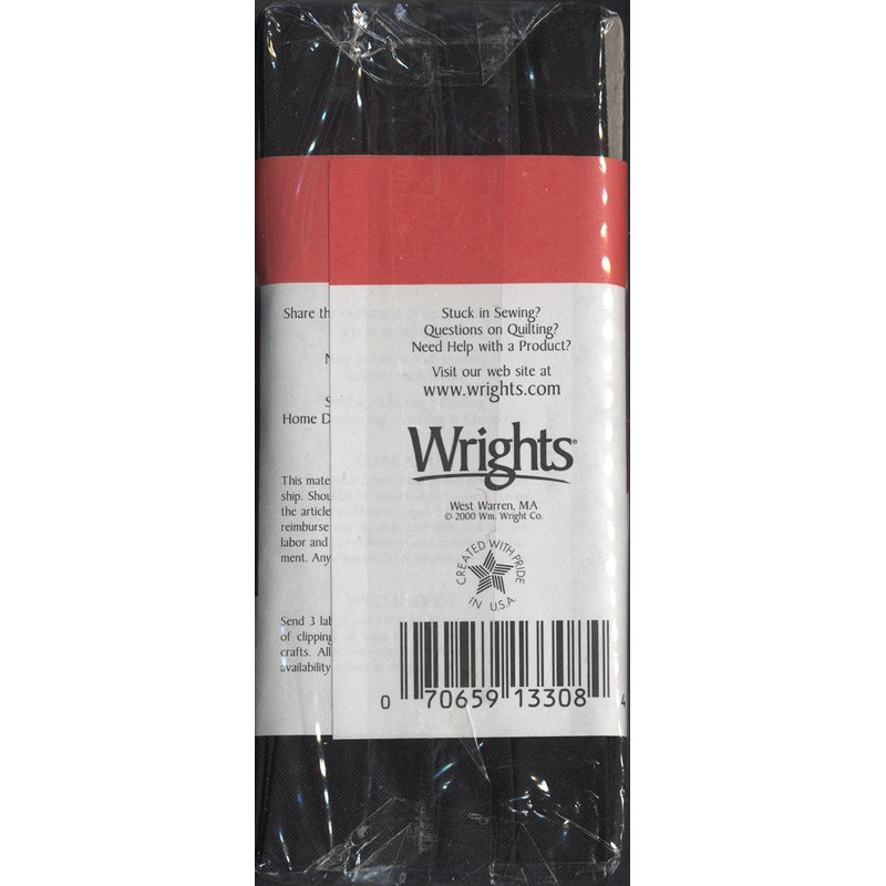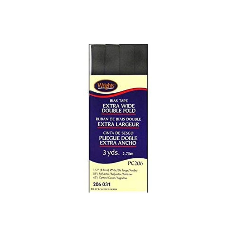 Wrights Products 117-206-031 Extra Wide Double Fold Bias Tape, 3 yd., Black