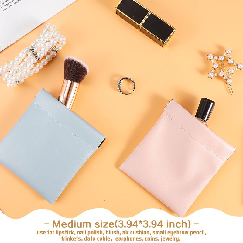 WSICSE 6 Pcs Lambskin Pocket Cosmetic Bag Squeeze Top, 3 Size Portable No Zipper Self-Closing Pouches for Purse Mini Bag Purse Small Makeup Pouch for Purse Cosmetics Headphones Jewelry