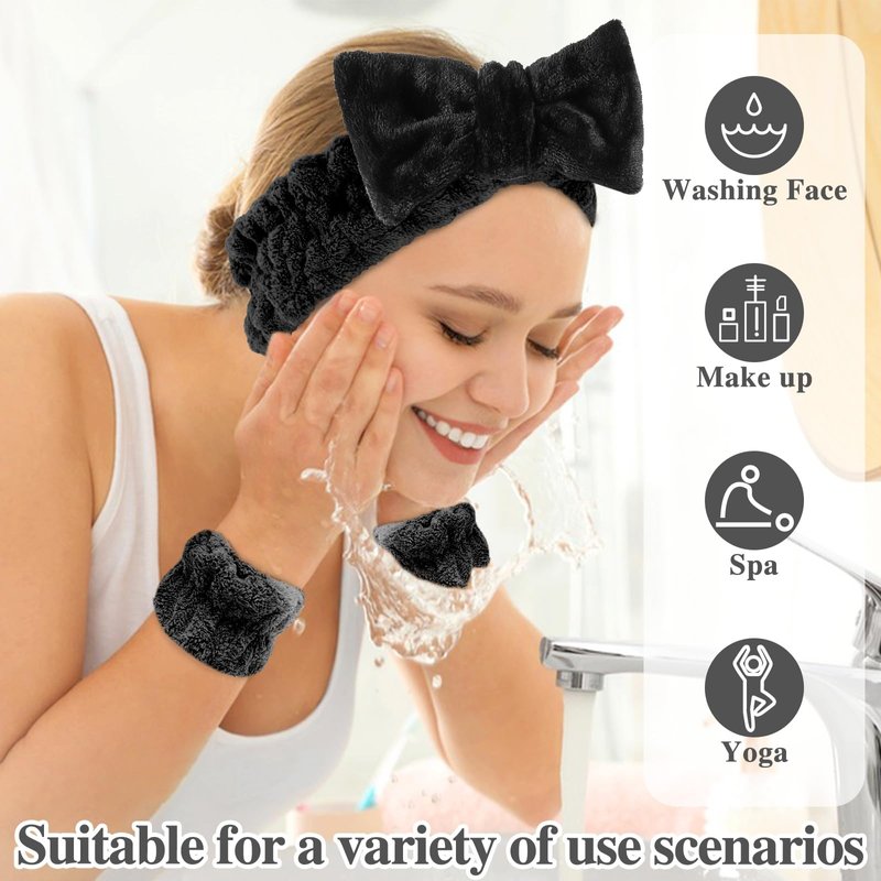 - Great Care Gifts: Our makeup headband and wrist towels for washing face are perfect for your morning or night time wash up, wristbands can prevent spilling down to your arms when washing, comfort and ease of use. It's also for teen girl gifts, spa supplies, stocking stuffers for women.