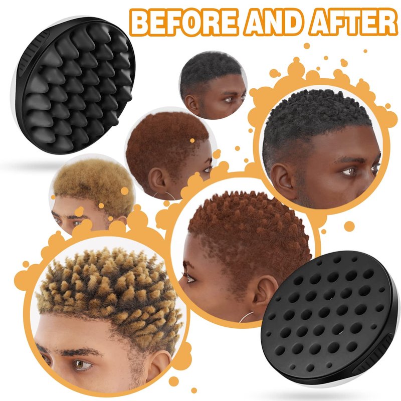 WTTORDE Silicone Twist Curl Hair Brush for Afro Waves, Detachable Two-Sided Wave Tool With Big and Small Holes for Men, Women, Short Hair, Black, 1 Pcs