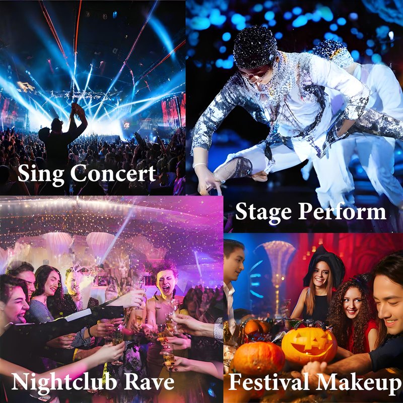 - 【Widely Used】 Use it anywhere you want and show your charm! Glitter gel can be applied to your body, cheeks, eyes, lips, cheeks, eyebrows, collarbone, hair and more and is the perfect rave accessory, especially for carnivals, bars, parties, weddings, stages and music festivals. Let your sparkling makeup become the most attractive focus under the lights!