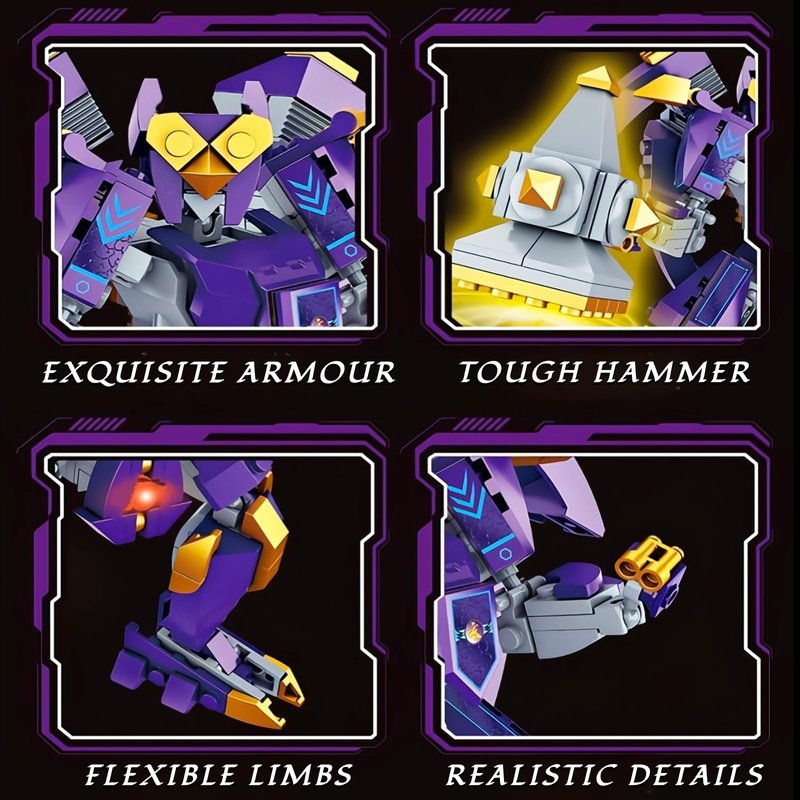 • The Charm of Detail Interaction: This valiant mech set has a movable head, multiple adjustable joints, and comes with a powerful hammer. The aggressiveness design shows its astonishing force value, increasing its whole attraction