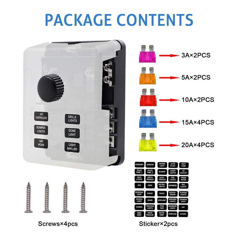 - ☞MAKE WIRING CLEAN – Instead of piling a mess of wires and fuse holders onto your battery posts, WUPP 12 volt fuse block/ground bus kit gives you 6 dedicated fuses and 6 ground locations to keep all of your wires clean, organized, and accessible. Made wiring electronics in your vehicles or boat a breeze!