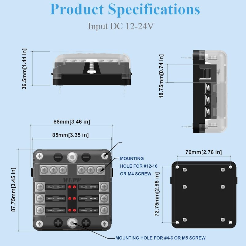 - MAKE WIRING CLEAN: Instead of piling a mess of wires and fuse holders onto your battery posts, WUPP 12 volt fuse block/ground bus kit gives you 6 dedicated fuses and 6 ground locations to keep all of your wires clean, organized, and accessible. Made wiring electronics in your vehicles or boat a breeze!