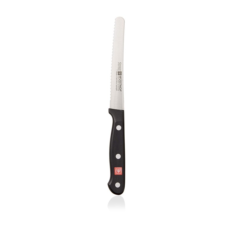 - WÜSTHOF UTILITY KNIFE – The GOURMET 4 1/2" Serrated Utility Knife is smaller than a cook’s knife but larger than a paring knife, making it the perfect knife for magnitude of tasks. A utility knife is much like a versatile paring knife and is perfect for mincing shallots, onions and herbs as well as cutting vegetables or cutting small meats