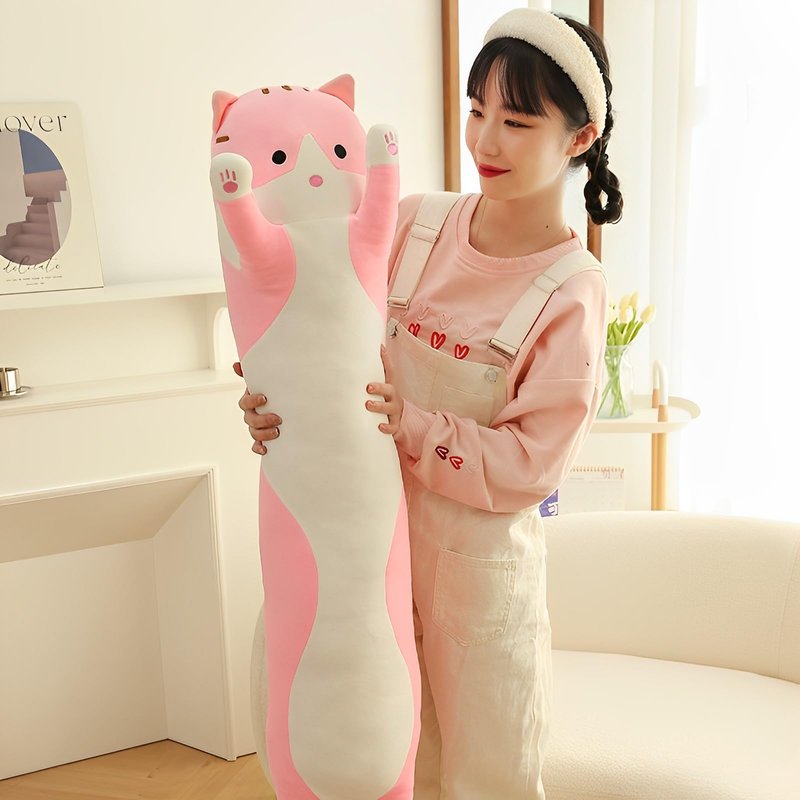 WUYU Lovely Plush Cat Doll Cute Cartoon Soft Stuffed Kitten Pillow Long Throw Sleeping Pillow Doll Toy Gift for Kids Girlfriend Multiple Size (Pink,50cm/19.6in)