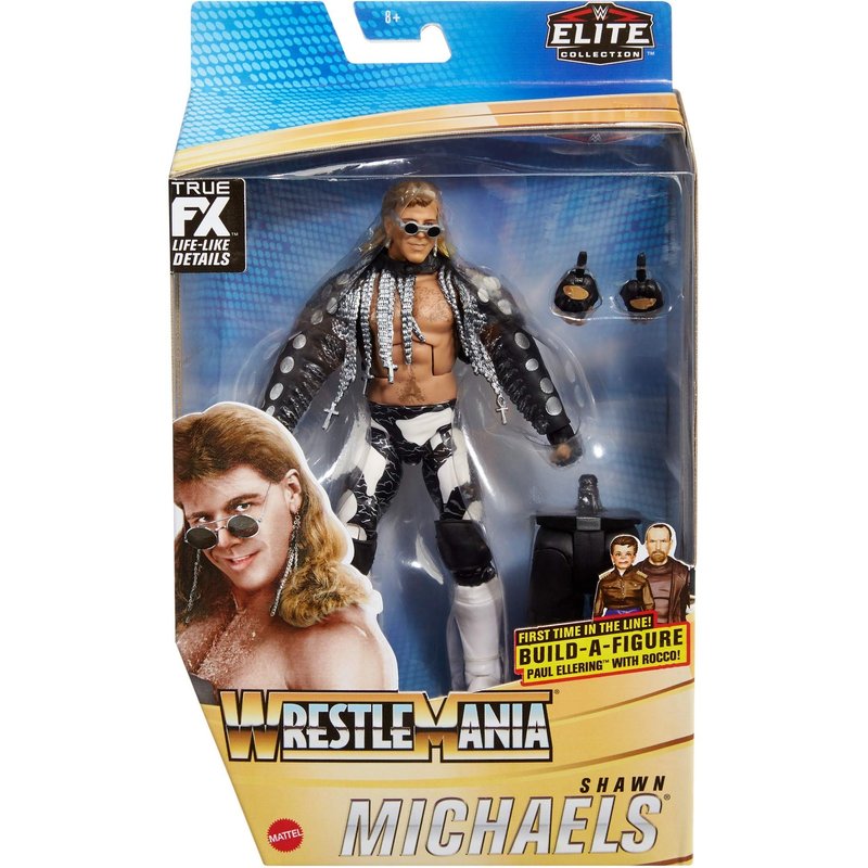 WWE Wrestlemania 37 Elite Collection Shawn Michaels Action Figure with Entrance VestSunglasses and Paul Ellering and Rocco BuildAFigure Pieces6 in Posable Collectible Gift for WWE Fans