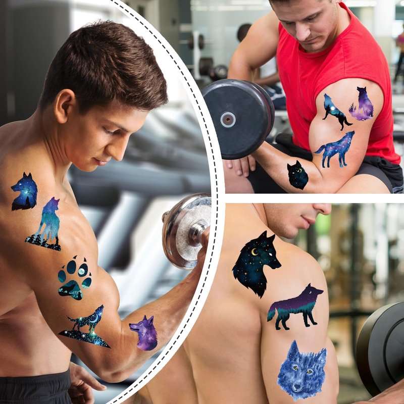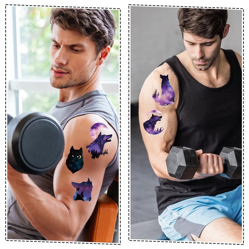 - Wolf Temporary Tattoos: You will receive 8 wolf-themed tattoo stickers. Combine the elements of wolves and starry sky to design a mysterious and advanced wolf tattoo. There are more than 20 patterns that look very attractive. You can easily have a cool wolf tattoo.