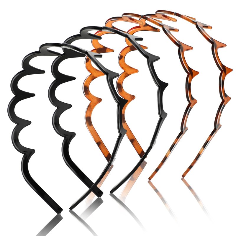 WY LIGHTING LEVEL Zig Zag Headbands, 4 Pieces Shark Tooth Hair Comb Hairband, Wavy Shape Plastic Hair Bands, Hair Hoop Accessory for Women Lady Girl (Black, Leopard-print Style)