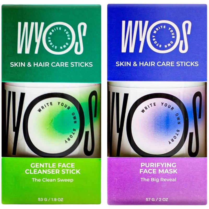 WYOS Face Cleanser & Clay Face Mask Stocking Stuffer Bundle | Travel Size, Leak Free, Vegan, Cruelty Free, Portable, Sulfate Free, Paraben Free