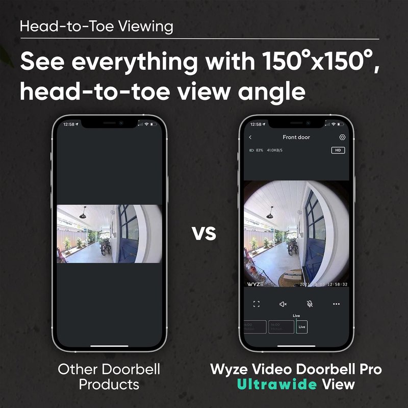 Wyze Wireless Video Doorbell Pro (Chime Included), 1440 HD Video, 1:1 Aspect Ratio: 1:1 Head-to-Toe View, 2-Way Audio, Night Vision
