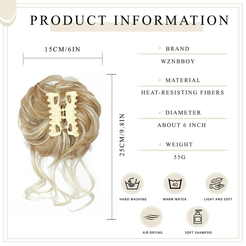 WZNBBOY Messy Bun Hair Piece Claw Clip Synthetic Chignon Tousled Updo with Tendrils Hair Extensions Hair Bun Curly Wavy Faux Hair Bun Hair Scrunchies Hair Accessories for Women (Blonde Mixed)