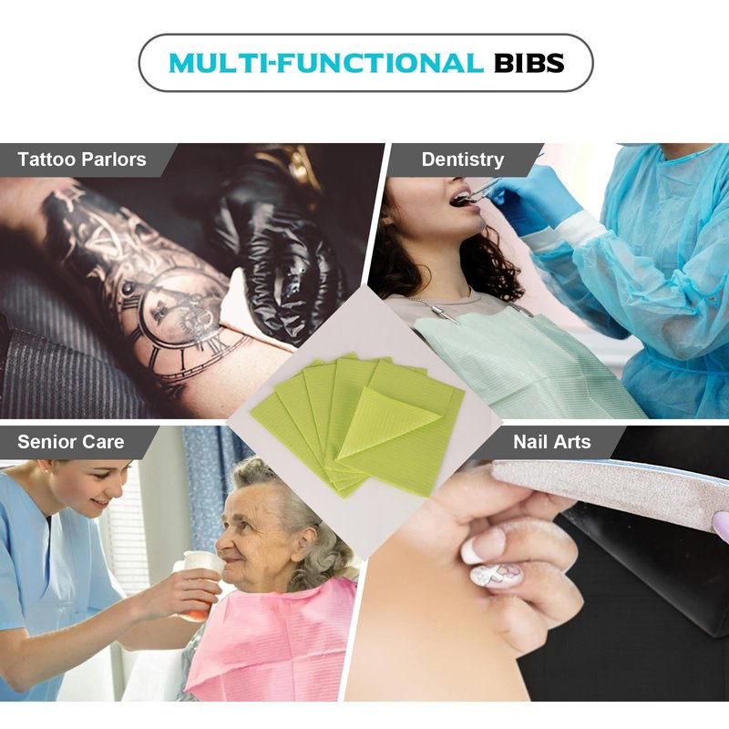 - Color: 50pcs Chartreuse Dental Bibs + 5pcs 3mm Tattoo Practice Skin