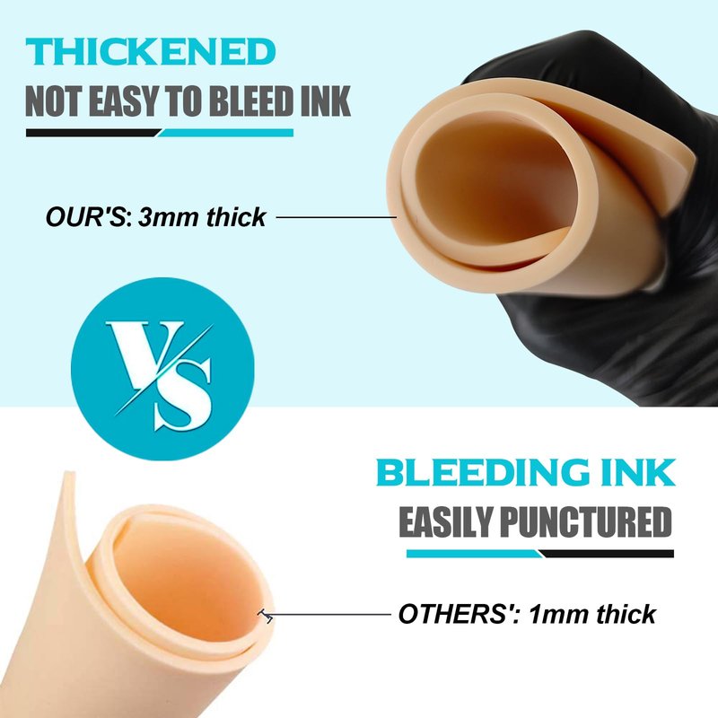 - 【TATTOO PRACTICE SKIN】 - These fake skins are made of silicone material, soft, reusable, and available on both sides. Compared to other practice skins, this one is 3mm thick for better quality.