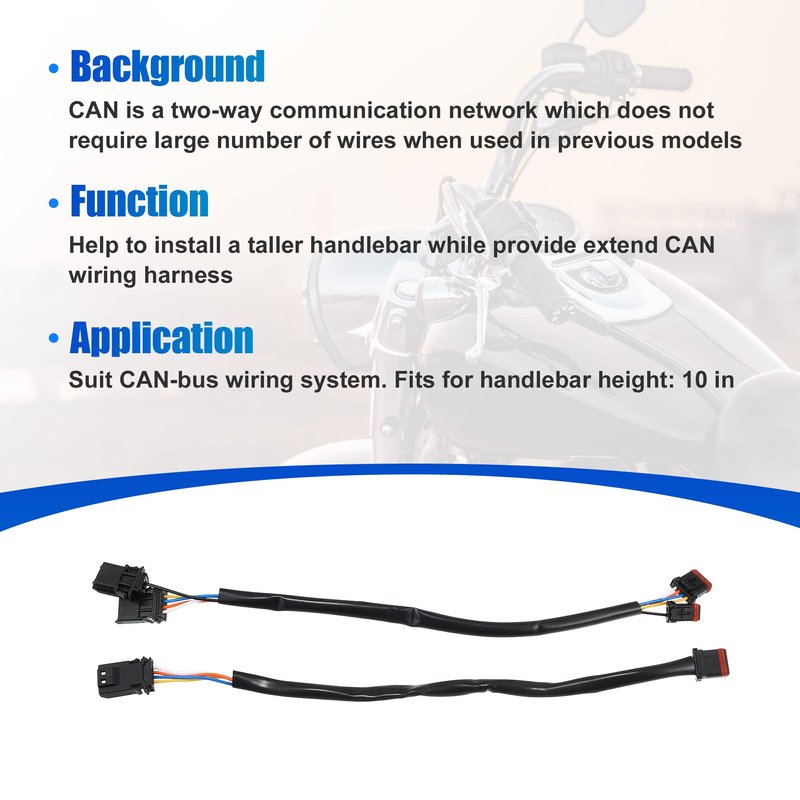 - [Application of Handlebar CAN Circuit Wire Extension] Fit for Handlebar Height: 10in. For Harley-Davidson Motorcycle Handlebar. For Softail 2011 and newer years, for Dyna 2012-2017, for Harley Electra Glide, for Ultra Classic, for Street Glide, for Road Glide, for Road King 2014 and newer.