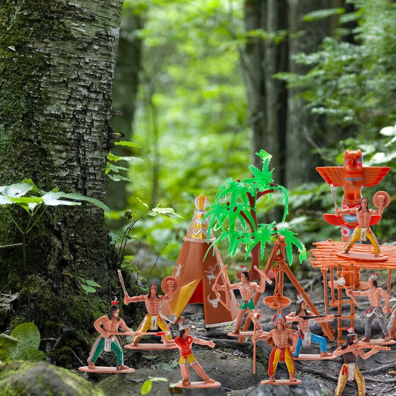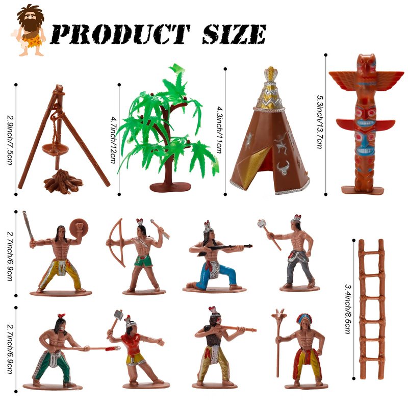 A set of Indians figurine(8 Indians, 1 Indian God, 1 Tree, 1 Shed, 1 Tent, 1 Campfire, a total of 13)
