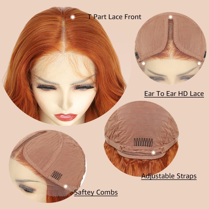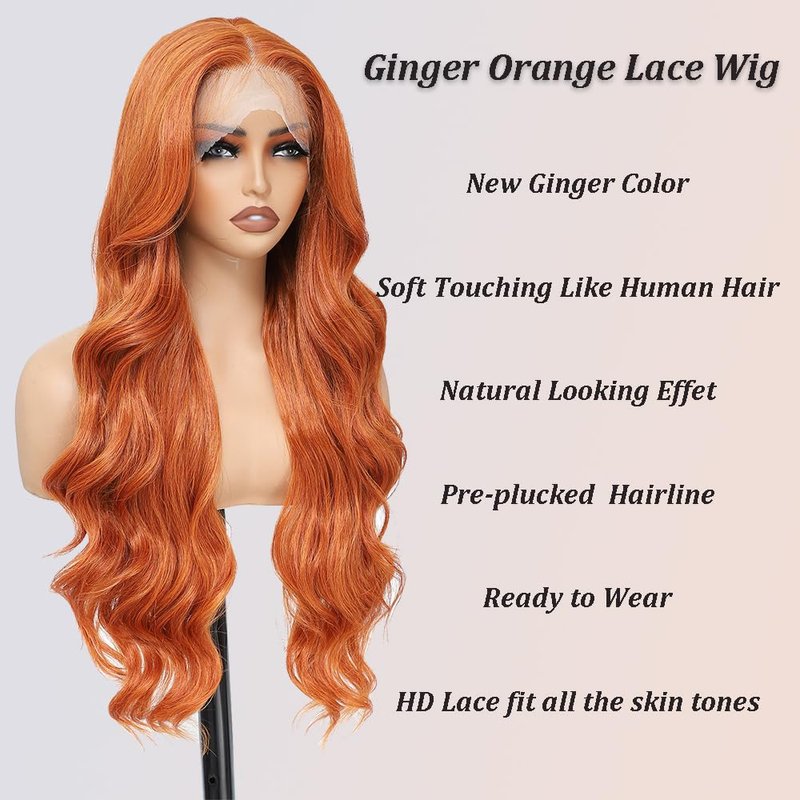 - Ginger Lace front Wigs: Ginger orange Premiun Quality Body Wave Hair Wig T Part HD Lace Front Wig with Baby Hair Natural Pre plucked Hairline,Heat Resistant High Temperature Wig, Super Soft and No Tangling, Full Layered Hair, Shiny and Natural Looking.